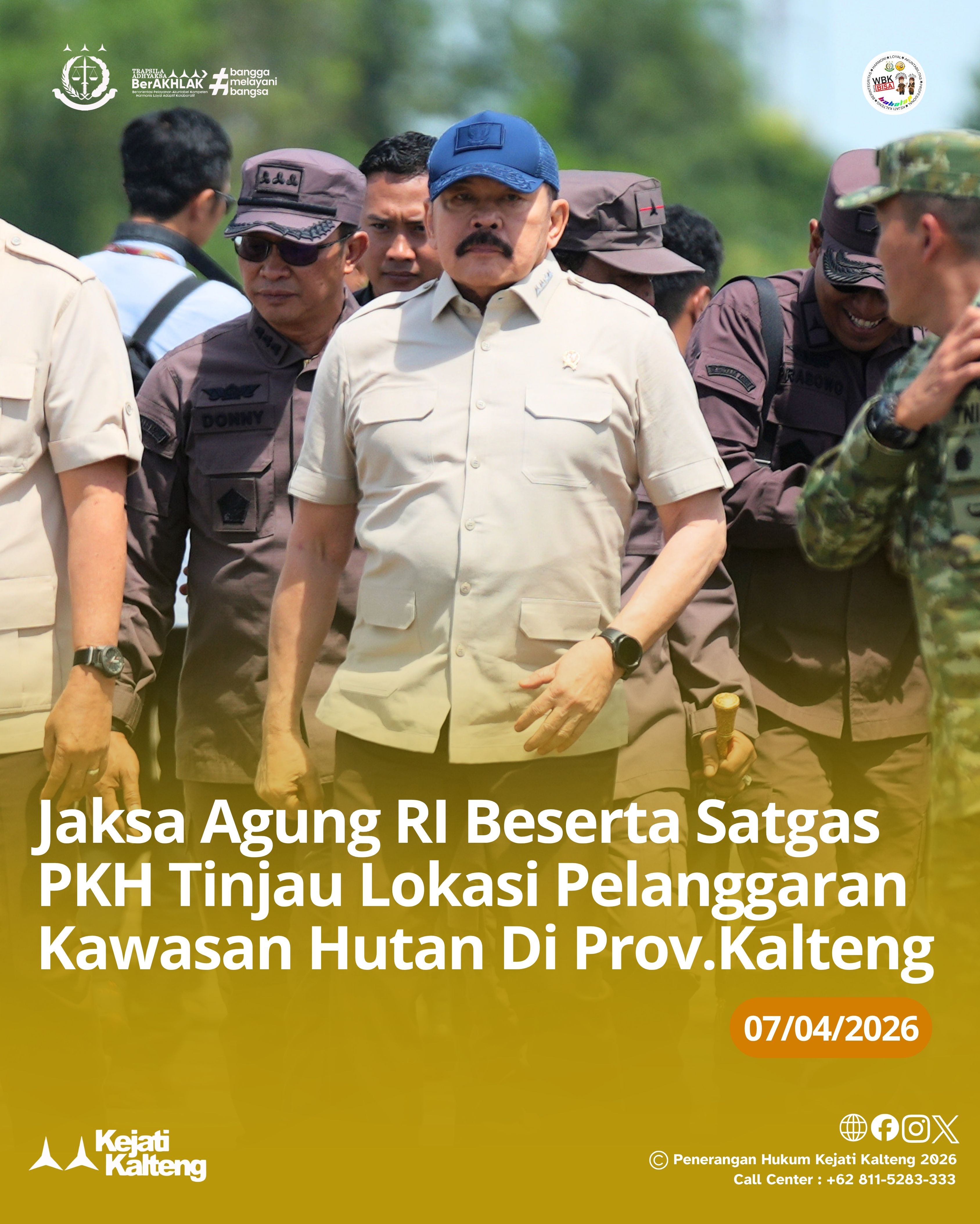 Selasa, 07 April 2026, Palangkaraya – Jaksa Agung Republik Indonesia ST Burhanuddin bersama Satuan Tugas Penertiban Kawasan Hutan (PKH) melakukan kunjungan kerja ke Provinsi Kalimantan Tengah, khususnya di Kabupaten Murung Raya dalam rangka peninjauan kawasan PT. Asmin Koalindo Tuhup (AKT).